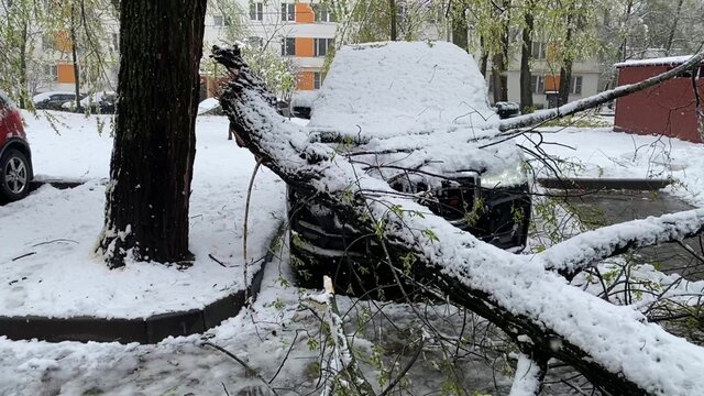 Устранение коммунальными службами последствий падения нескольких деревьев на ул. Чертановская