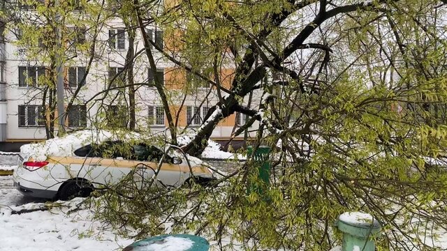 Деревья упали на припаркованные автомобили на Нахимовском проспекте в Москве