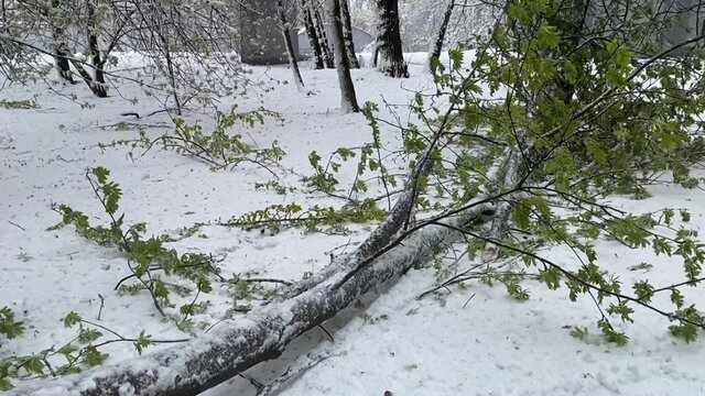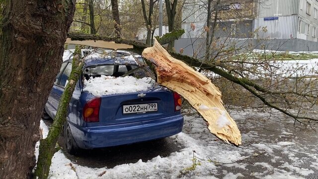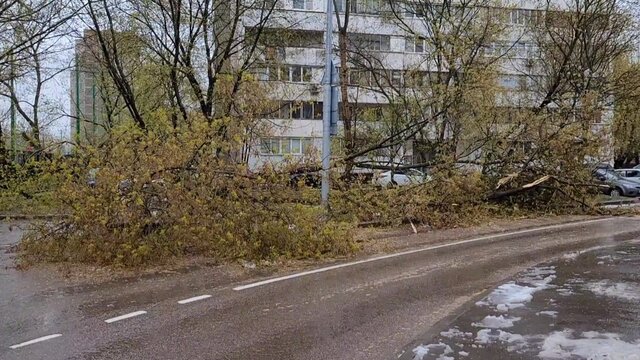 Во дворе дома 13, корп. 2 в Востряковском проезде несколько деревьев упало на детскую и спортивную площадки. Кроме этого, рядом на расположенной парковке несколько суков деревьев упали рядом с припаркованными автомобилями, чудом не задев их.