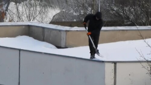 Уборка снега с крыши здания