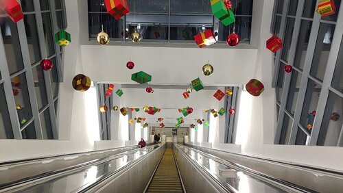 Эскалаторную галерею на Воробьевых горах украсили к Новому году