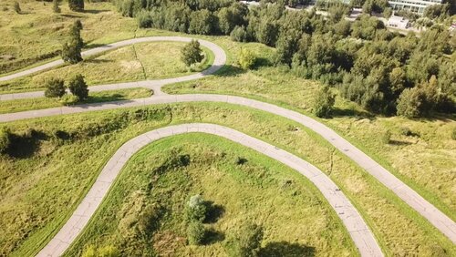 Вид с квадрокоптера на Олимпийскую кольцевую велотрассу на Крылатских холмах