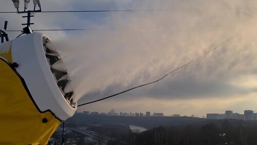Оснежение горнолыжного склона генератором снега на Крылатских Холмах