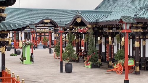 Вид с квадрокоптера на круглогодичную ярмарку и Японский сад в районе Куркино на северо-западе столицы