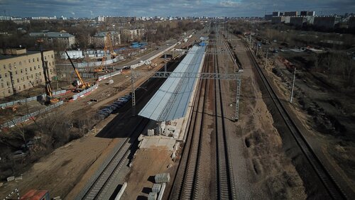 Вид с квадрокоптера на строительство платформы "Курьяново" на МЦД-2 на юго-востоке Москвы