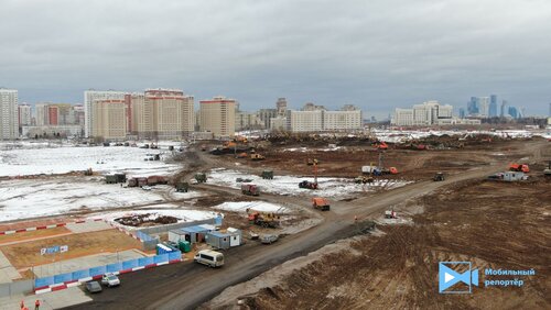 Вид с квадрокоптера на территорию строительства ИНТЦ МГУ в районе Раменки