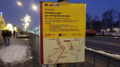 Объявление об изменении 6 января маршрутов автобусов М6 и С755