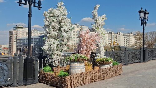 Патриарший мост украшают живыми цветами в рамках проекта "Лето в Москве"