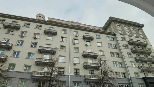 Очистка кровли Дома Писателей в центре Москвы