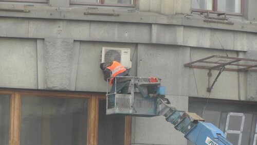 Начался демонтаж внешних конструкций на фасаде реставрируемого здания Центрального телеграфа