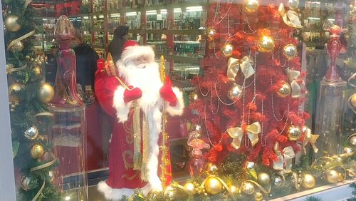 Украшенные к Новому году витрины магазинов на ул. Тверская