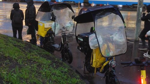 Доставщики устанавливают на электровелосипеды защиту от ветра и дождя