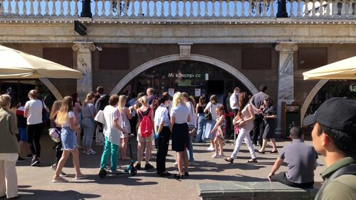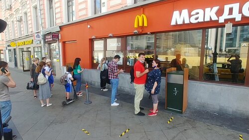Очереди за едой в рестораны быстрого питания на Манежной площади вечером 4 ноября