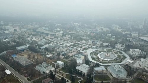 Вид с квадрокоптера на недостроенный небоскреб "Синий зуб" на проспекте Вернадского