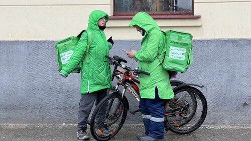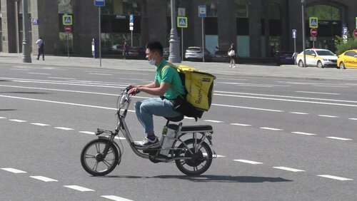 Велокурьер врезался в автомобиль такси в центре Москвы