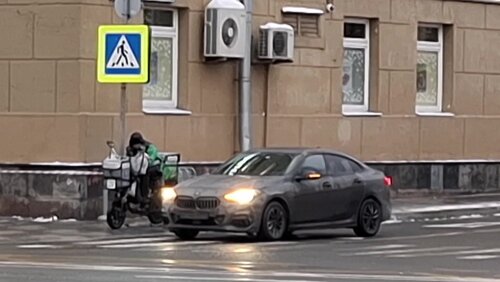 На западе столицы автомобиль на пешеходном переходе сбил курьера на злектровелосипеде