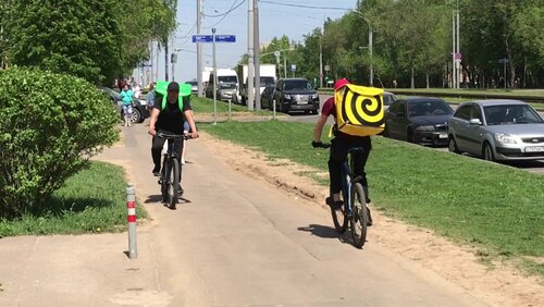 Последствия ДТП на улице Пришвина с участием курьера на велосипеде