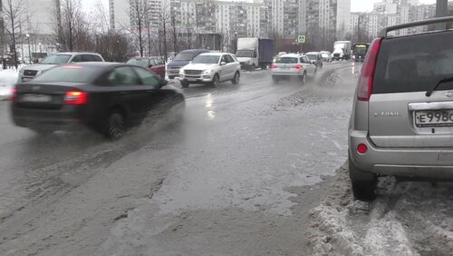 Стремительное таяние снега и лужи в связи с аномально высокой температурой воздуха в Москве