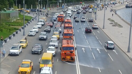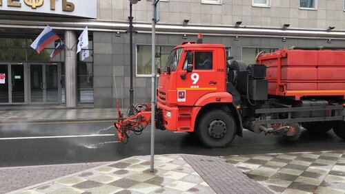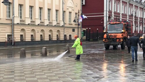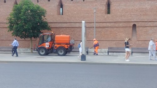 Промывка тротуара на Пятницкой улице возле Климентовской церкви