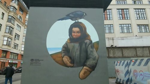 Обновлённый мурал "Мальчик с соколом" в центре Москвы
