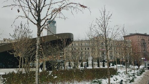 Новогодняя световая подсветка деревьев и арт-объектов на Павелецкой площади