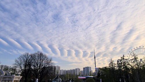 Необычные тучи, похожие на облака-мамматусы, в небе над Москвой