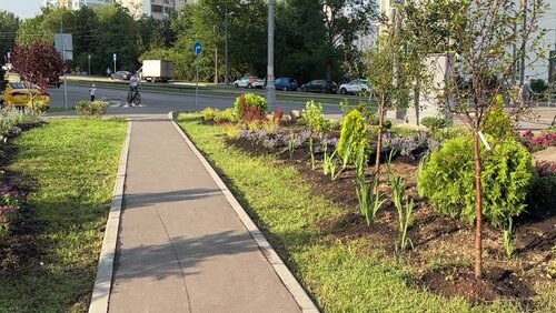Деревья, кустарники и цветы высадили на улице Чертановская на юге Москвы