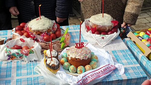 Освящение пасхальных куличей и яиц в Богородском храме на востоке Москвы