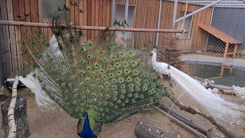 Осенний вид павлинов в Московском зоопарке