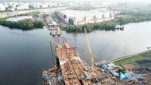 Строительство моста через Кожуховский затон к парку развлечений «Остров мечты» в Нагатинской пойме