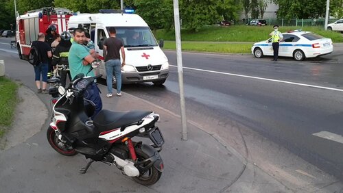 Последствия ДТП на Ленинградском шоссе с участием скутера: двое пострадавших