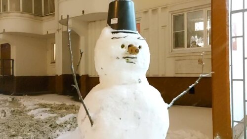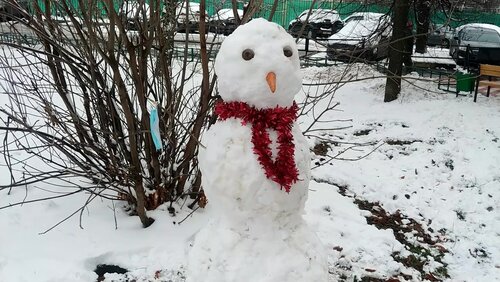 Веселый снеговик появился на Ивантеевской улице на востоке столицы