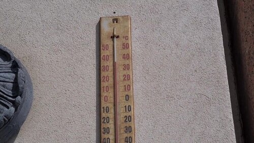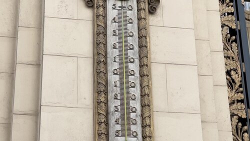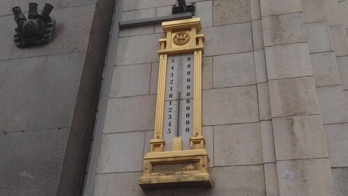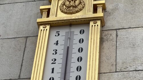 Температуру +31 градус в тени показывает термометр на фасаде здания Мэрии в центре Москвы