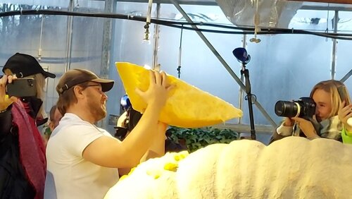 Самую большую тыкву разрезали в Ботаническом саду МГУ "Аптекарский огород"