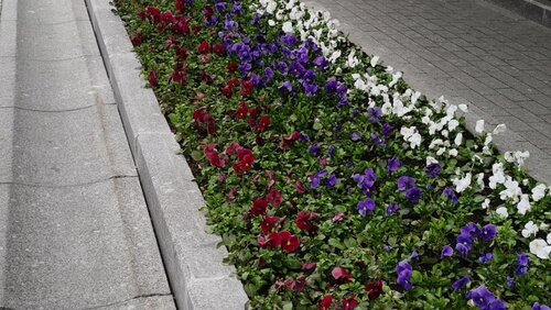 На клумбы вдоль главной аллеи Александровского сада высадили виолу Витрокка цветов российского флага