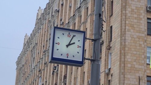 Часы "взбесились" и пошли очень быстро возле вестибюля станции метро «Боровицкая»