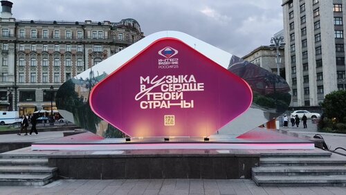 Часы обратного отсчета на Манежной площади до старта музыкального конкурса «Интервидение»