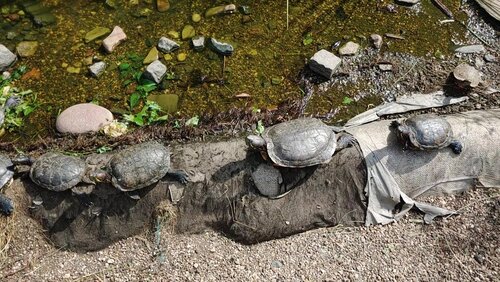 Красноухие черепахи в "Аптекарском огороде" принимают солнечные ванны