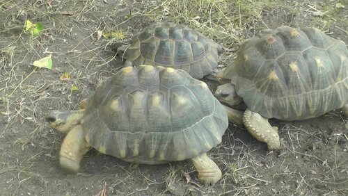 Слоновые и лучистые черепахи в летнем вольере Московского зоопарка
