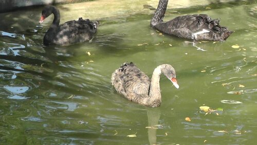 Подросшие птенцы черных лебедей в Московском зоопарке