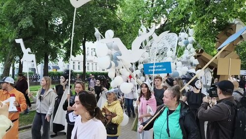 Театральное шествие прошло на старом Арбате в рамках фестиваля «Золотая маска 2024»