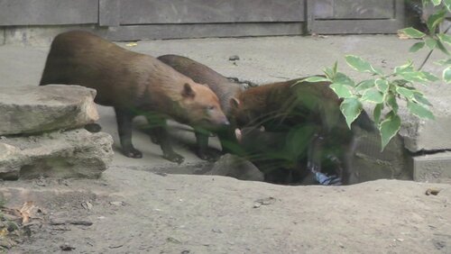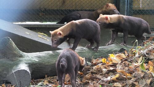 Детеныши кустарниковых собак в открытом вольере Московского зоопарка