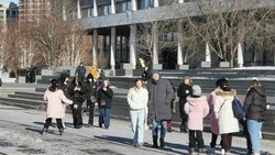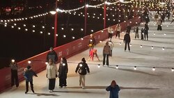 Отдых горожан на бесплатном катке площадки проекта «Зима в Москве» на Болотной площади